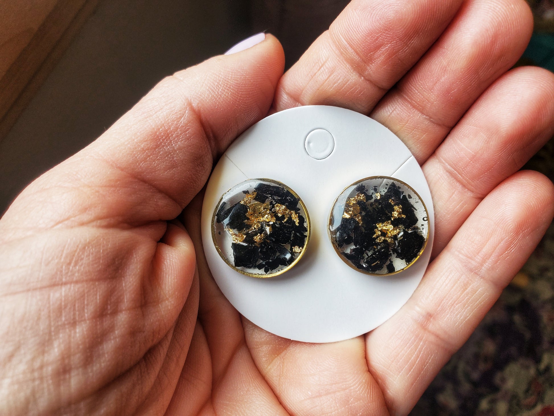 Boutons d'oreilles XL avec pierres de Tourmaline et flocons d'or