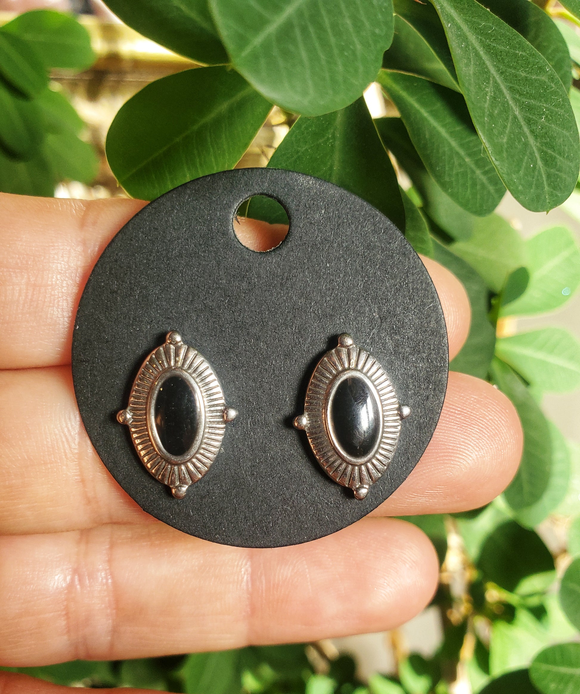 Boucles d'oreilles en acier inoxydable avec résine noire